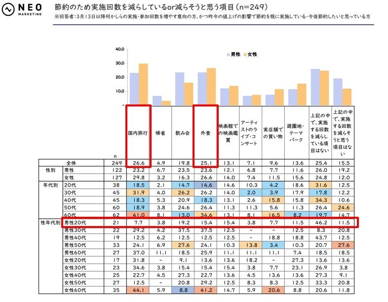 - 節約のため実施回数を減らしている or 減らそうと思う項目(n=249)
