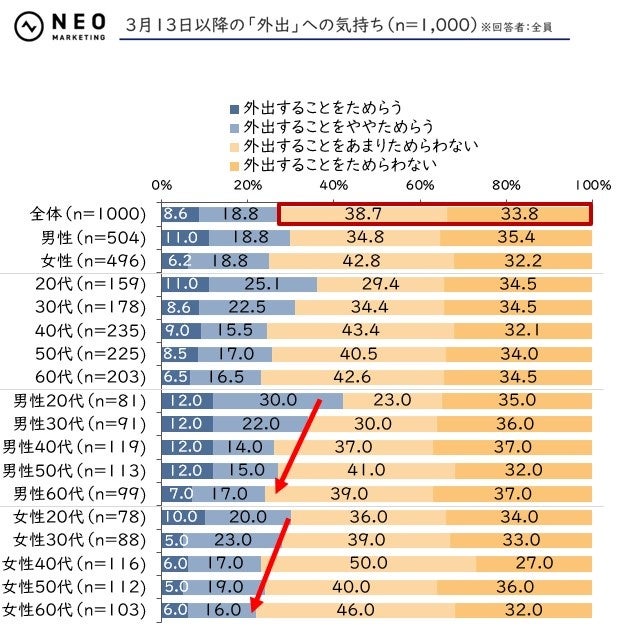 - 3月13日以降の「外出」への気持ち(n=1,000)