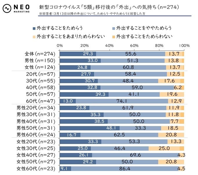 - 新型コロナウイルス「5類」移行後の「外出」への気持ち(n=274)