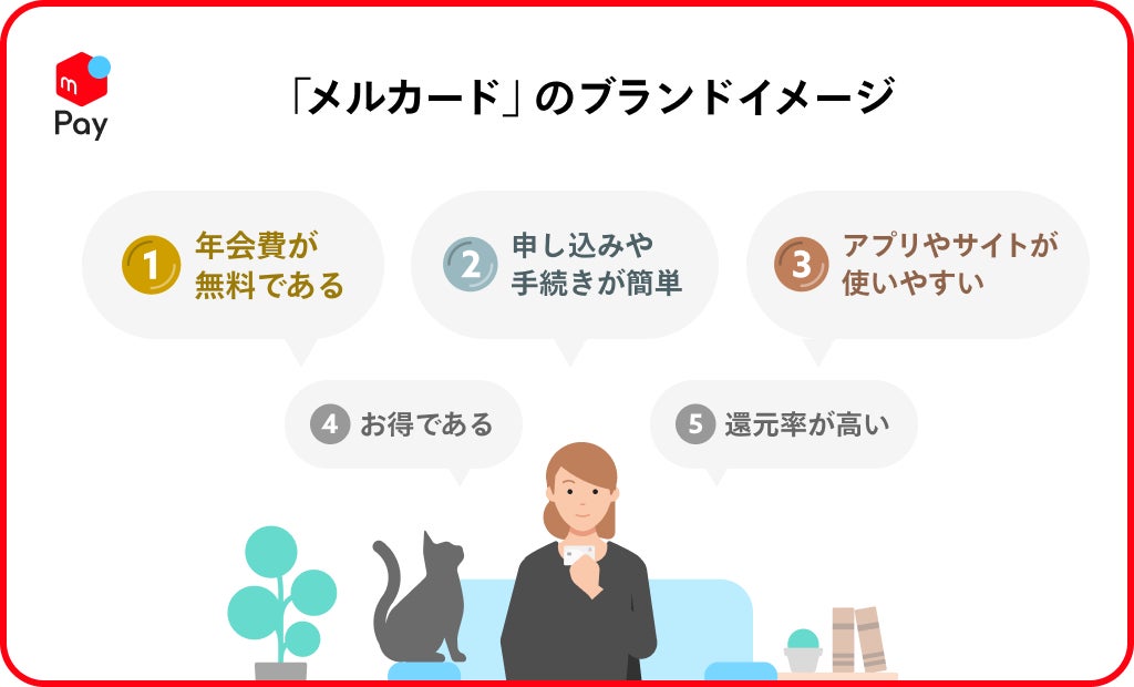 一方で、2023年2月に「メルカリ」アプリ内で行った調査で「メルカード」のブランドイメージについて聞いたところ、「年会費が無料である」に次いで、「申し込みや手続きが簡単」、「アプリやサイトが使いやすい」などが多く挙がり、普段の「メルカリ」利用の延長線上で気軽に申し込みから利用まで完結することにメリットを感じている方が多くいることが分かりました(※4)。