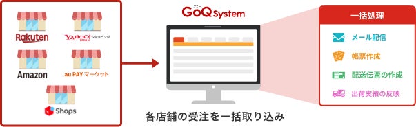 「メルカリShops」の受注を「GoQSystem」にAPI形式で取り込み、その他モール・カートの受注と併せて受注処理作業を行うことが可能になりました。