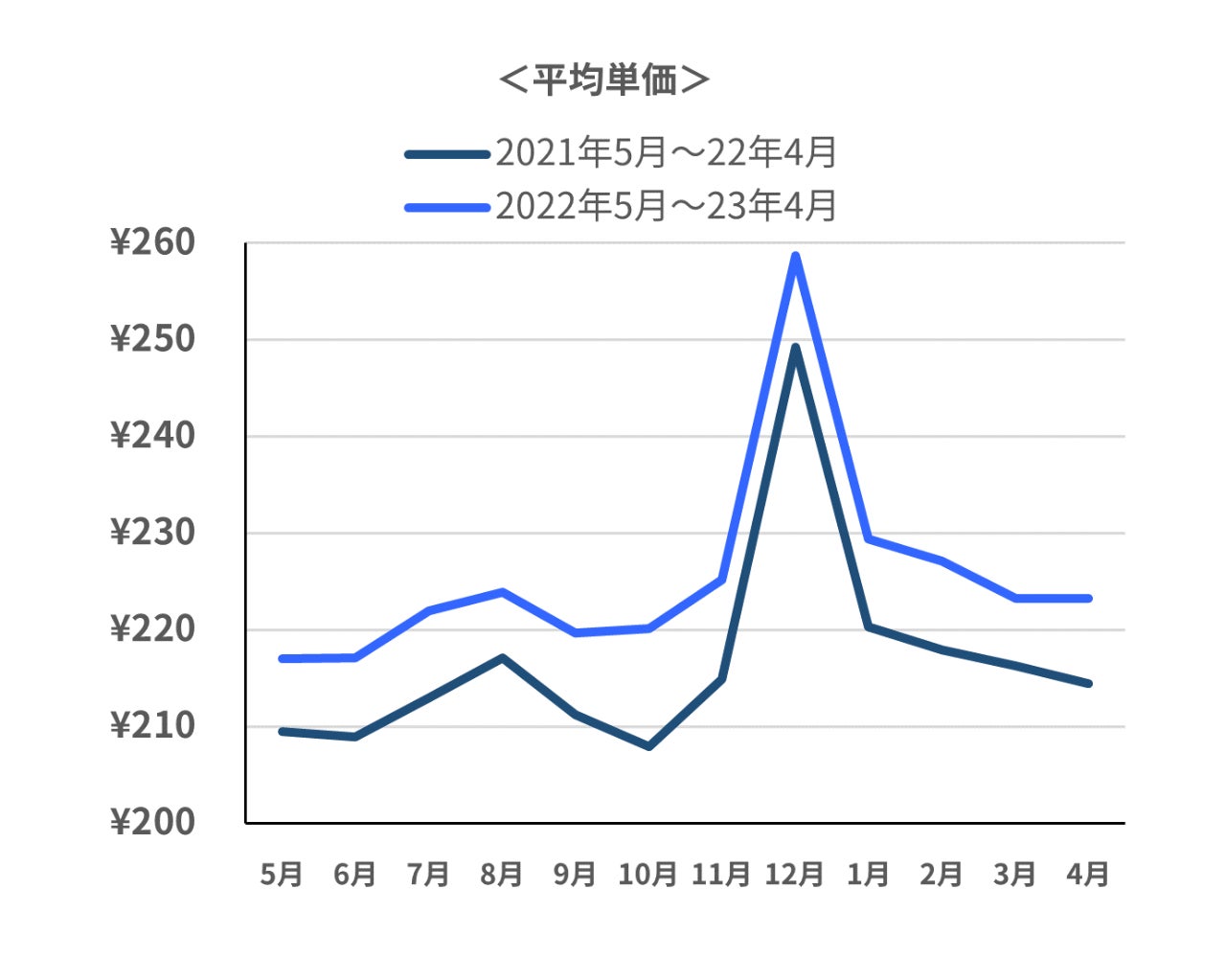 平均単価は前年比約4.1%増、平均購入数量約1.3%増