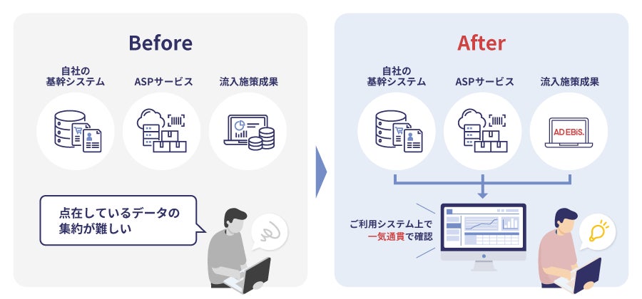 そこでこの度、アドエビスとAJAは業務提携し、Cookie規制に対応した正確なデータ計測を可能とするアドエビスのデータとAJAのOTT広告運用に対する豊富なノウハウを活かした、OTT広告の効果測定・運用支援を開始いたします。これにより、OTT広告といった認知向上施策とその他コンバージョン獲得を目的としたWeb施策の効果を一気通貫で評価できるようになり、最終的なOTT広告の売上貢献度の可視化を支援します。
