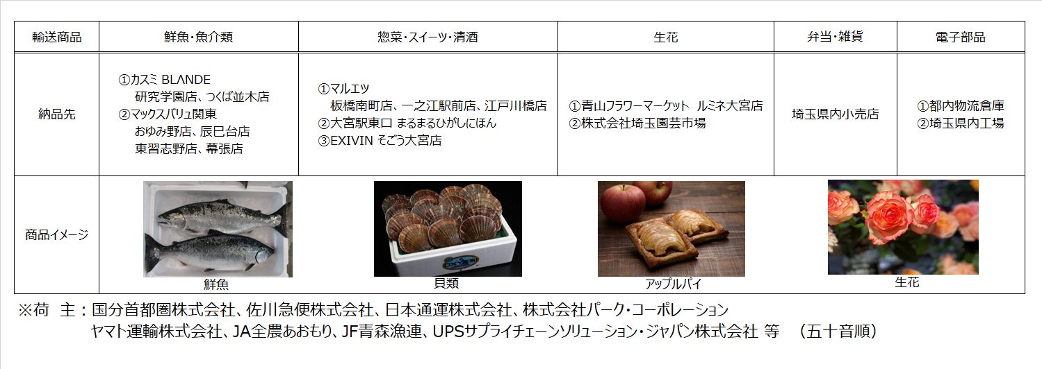 輸送商品:鮮魚、スイーツ、生花、電子部品等 約600箱程度