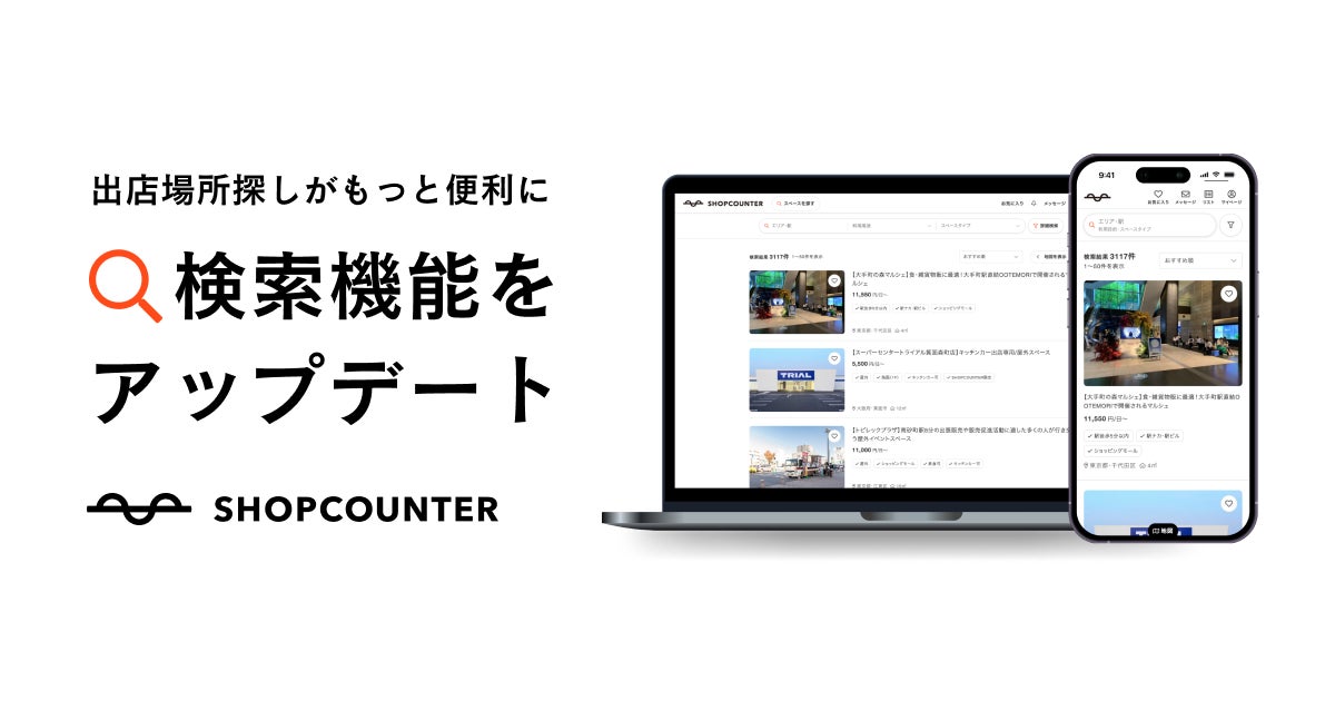 株式会社COUNTER WORKS(東京都目黒区、代表取締役CEO:三瓶直樹)が運営するポップアップストアや催事などの出店場所探しのプラットフォーム「SHOPCOUNTER(ショップカウンター)」は、5月10日に検索機能をアップデートしました。お取り扱い商材や利用用途を軸に場所探しができるようになったことで、よりカンタンに求めている場所を探すことができます。
