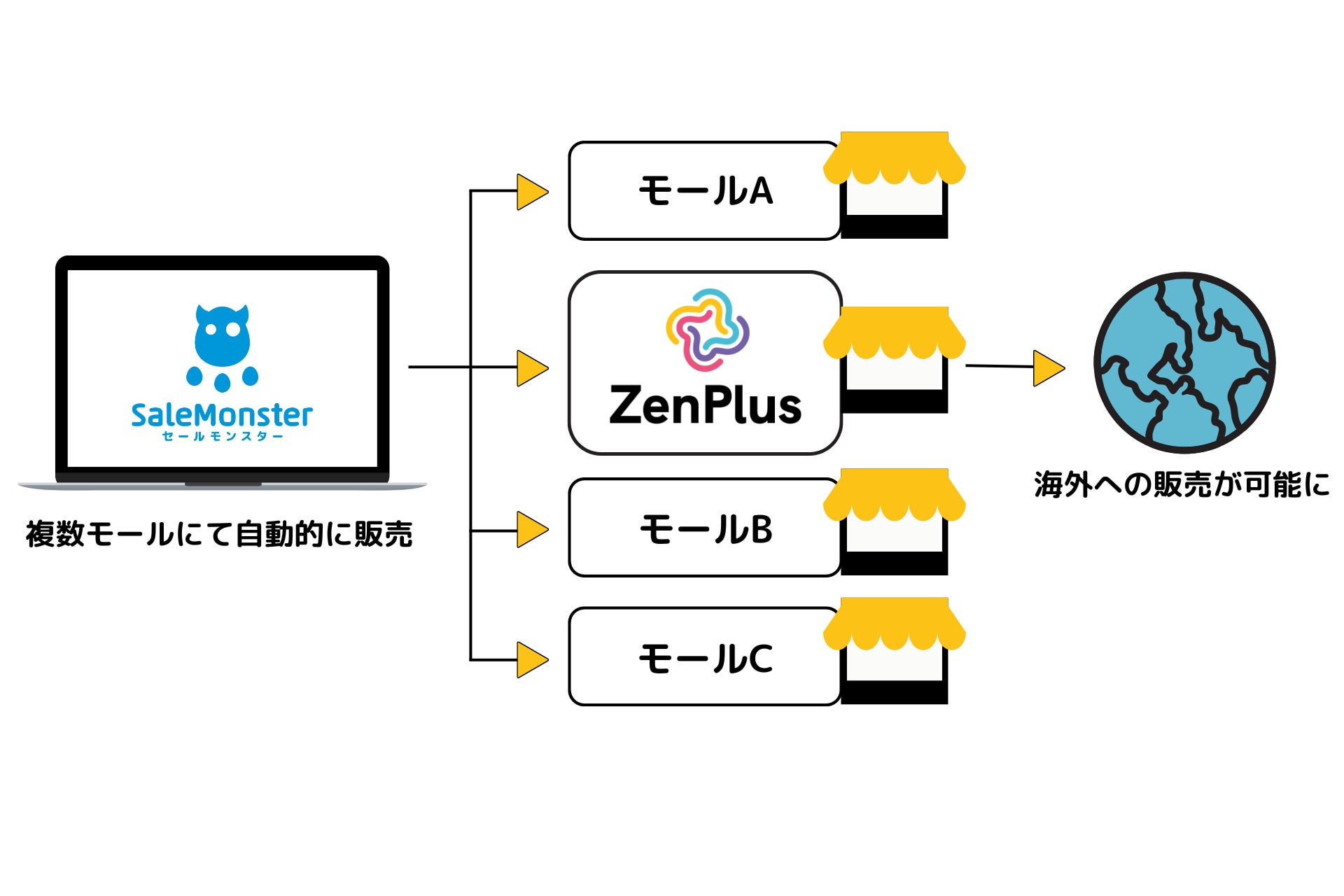 越境ECをトータルで支援するZenGroup株式会社(所在地:大阪府大阪市)が運営する越境ECモール「ZenPlus」はエイチキューブ株式会社(本社:愛知県名古屋市中区、代表:堀部謙二)が開発・提供を行うフルオート販売チャネル拡張サービス「SaleMonster(セールモンスター)」とAPI連携することをお知らせいたします。