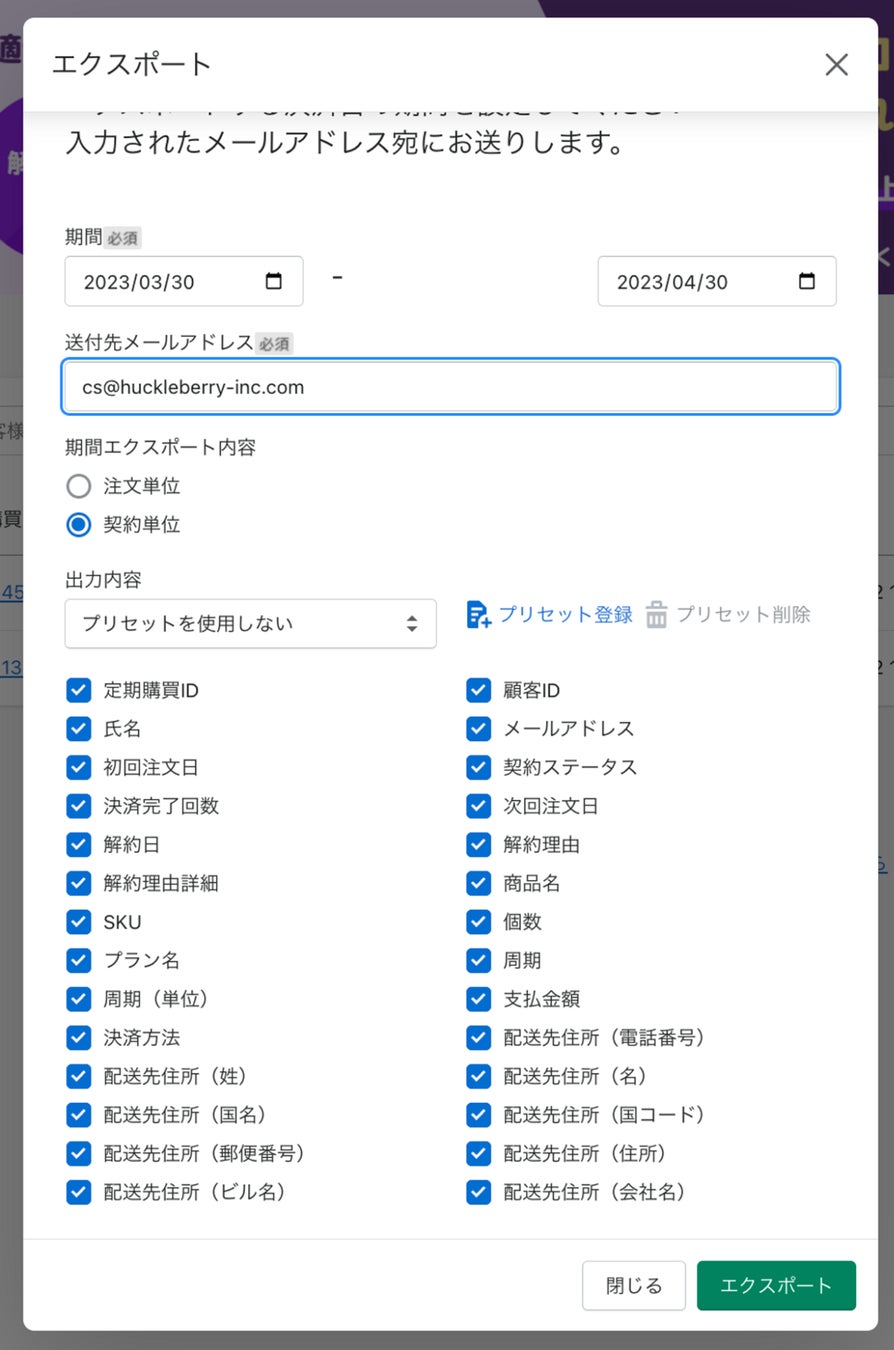 株式会社ハックルベリー(東京都世田谷区、代表取締役社長:安藤 祐輔、以下「ハックルベリー」)が提供する定期購買APIに対応したアプリ「定期購買」にて、分析機能をアップデートしたことをお知らせします。売上データCSVを事業者(マーチャント)ごとにカスタマイズでき、BIツールとの連動や、ストア独自の計測・分析がさらにおこないやすくなりました。