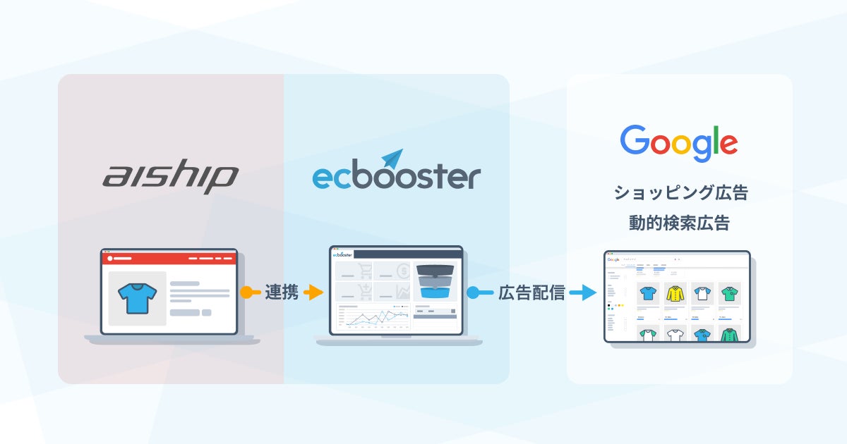 株式会社フィードフォース(本社:東京都文京区、代表取締役:塚田 耕司)が提供する広告自動運用サービス「EC Booster」は、株式会社ロックウェーブ(本社:滋賀県大津市、代表取締役:岩波 裕之)が提供するクラウド型ECカート「aishipR」「aishipGIFT」「aishipRENTAL」(以下「aishipシリーズ」)と連携を開始いたしました。この連携により、Googleショッピング広告の手軽なスタートや運用実施が可能になります。