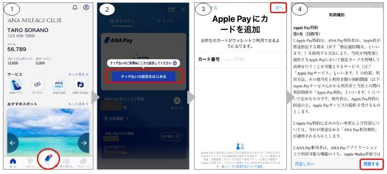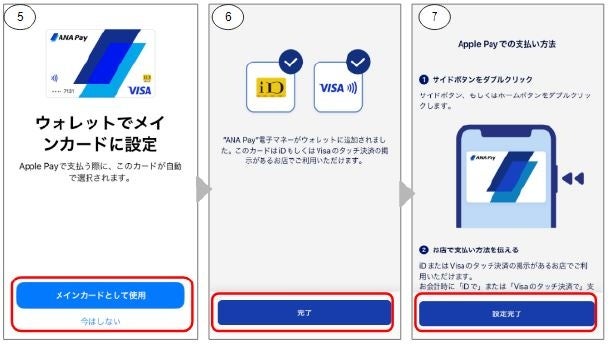 本サービス開始により、ANA Payを利用するユーザーは「ANAマイレージクラブアプリ」から簡単にApple Payを設定し、全てのVISAタッチ決済対応加盟店及びiD加盟店でANA Payを利用することが可能になります。Apple PayはiPhoneやApple Watchを使ってカードよりも簡単、安全に非接触決済を可能にするサービスです。ANA PayをApple Payで利用することにより、ユーザーは店頭で「Visaタッチで」または「iDで」と話し、iPhoneやApple Watchをかざすだけでより安全にANA Payで決済することができます。