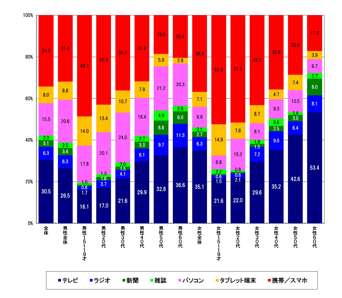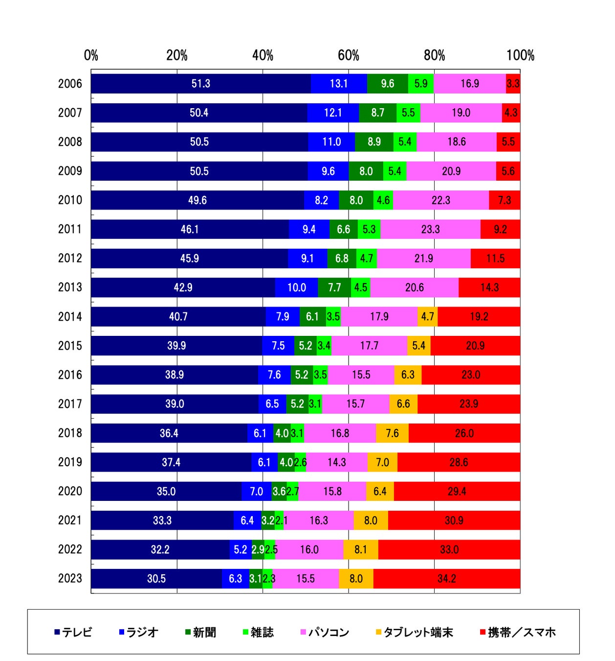 ※2014年より「パソコンからのインターネット」を「パソコン」に、「携帯電話(スマートフォン含む)からのインターネット」を「携帯電話・スマートフォン」に表記を変更