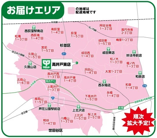 - お届けエリア(東京都杉並区、世田谷区の以下の地域)