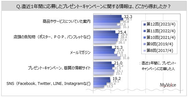 - 直近1年間に応募したプレゼント・キャンペーンに関する情報入手先