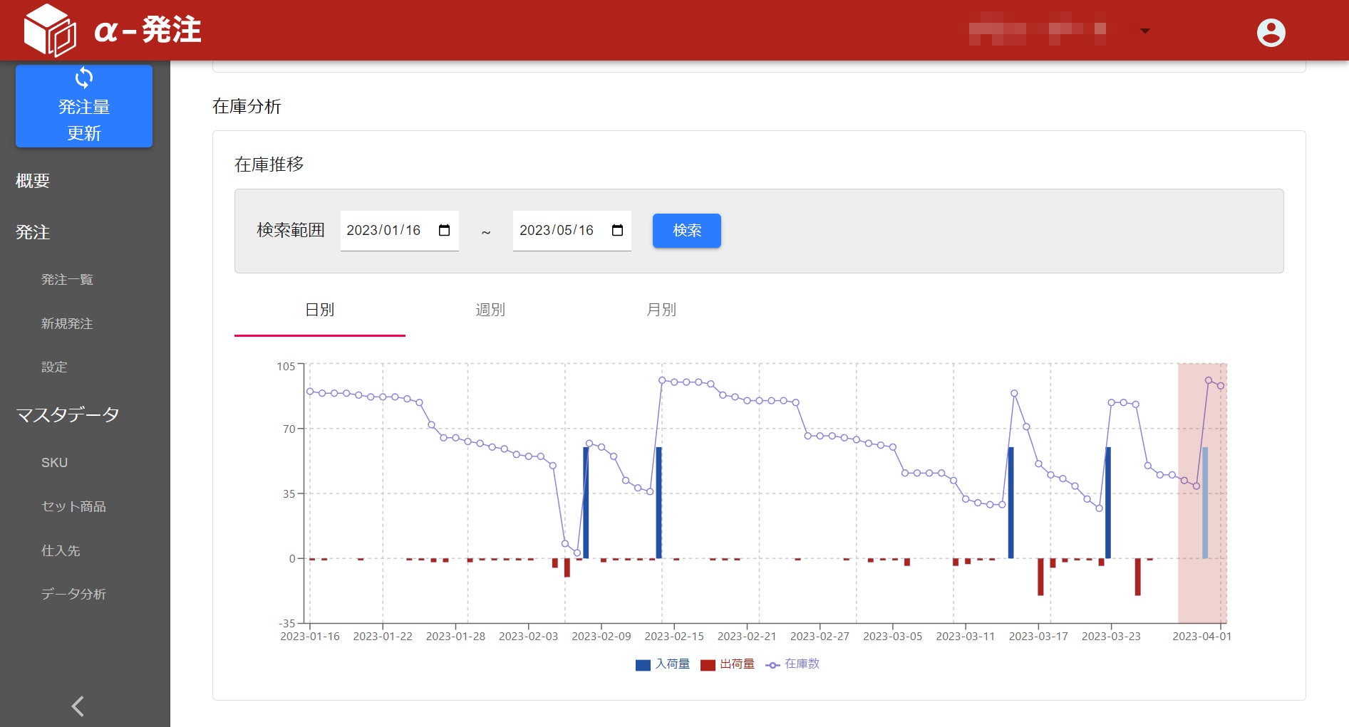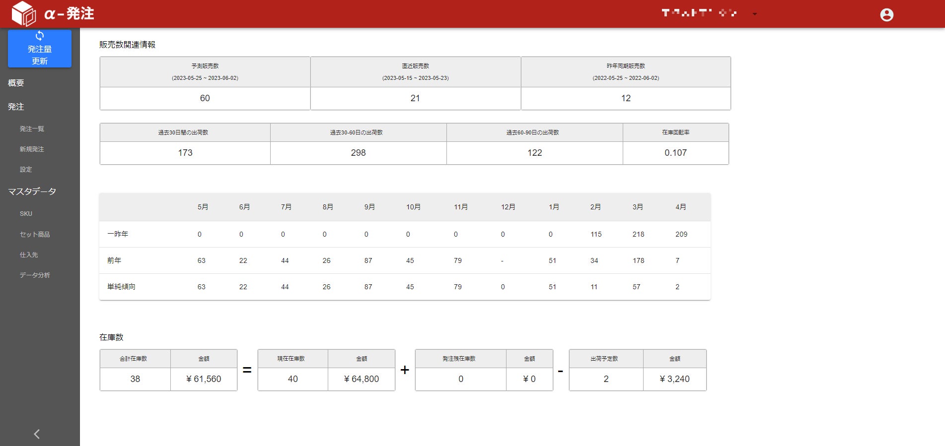 「α-発注」に登録されたデータが自動で集計・分析され、発注量を決める上で重要な指標を簡単に確認できるようになりました。