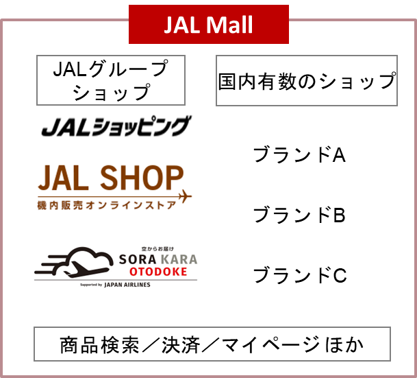 これまで個別に展開していた「JALブランドコミュニケーションストア」・「JALアグリポートオンラインショップ」の販売品は「JALショッピング」に集約します。また、国内有数のショップと提携し、多彩な商品を展開します。今後、出店数、商品数ともさらに拡大予定です。