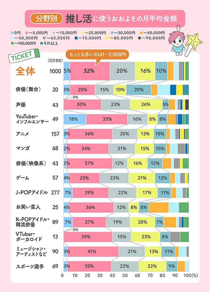 ※1,000人の推し活事情を調査。月の平均金額と推しの分野別平均額を比較