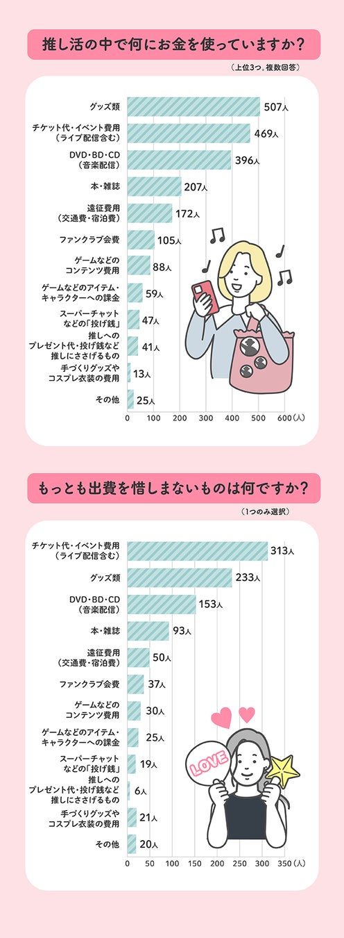 今回の調査では、推し活に使うお金のポリシーについての回答で「長く続けるためにも無理はしない」というコメントが見られたように、推し活をする人たちは推し活を続けたいからこそ堅実であり、お金の使い道を厳選していることがわかりました。