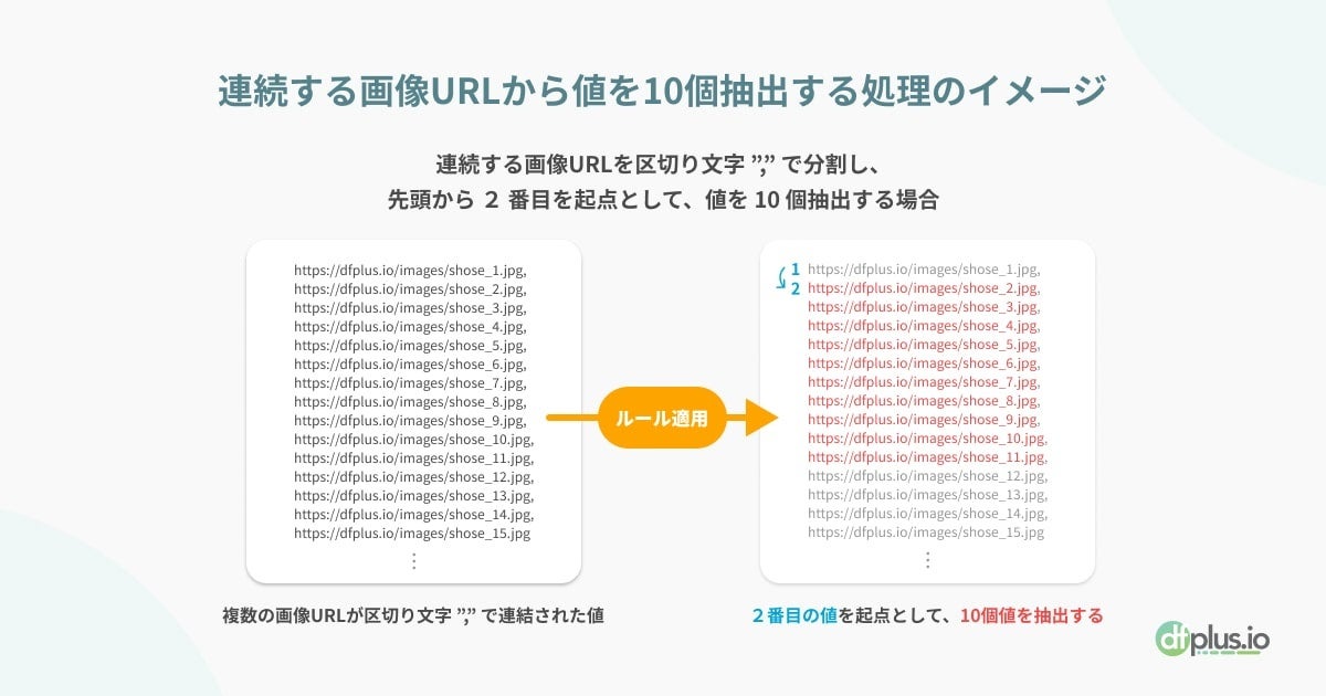マスターデータの1つの項目に、カンマ区切りなどで複数のURLや値が格納されている場合に便利な機能です。