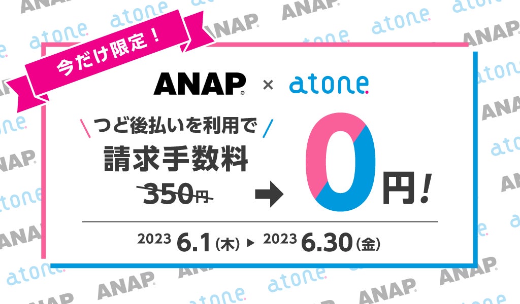 キャンペーン期間中に初めてANAPでatone【後払い(コンビニ/銀行ATM)】をご利用いただいた方は請求手数料350円が無料になります。