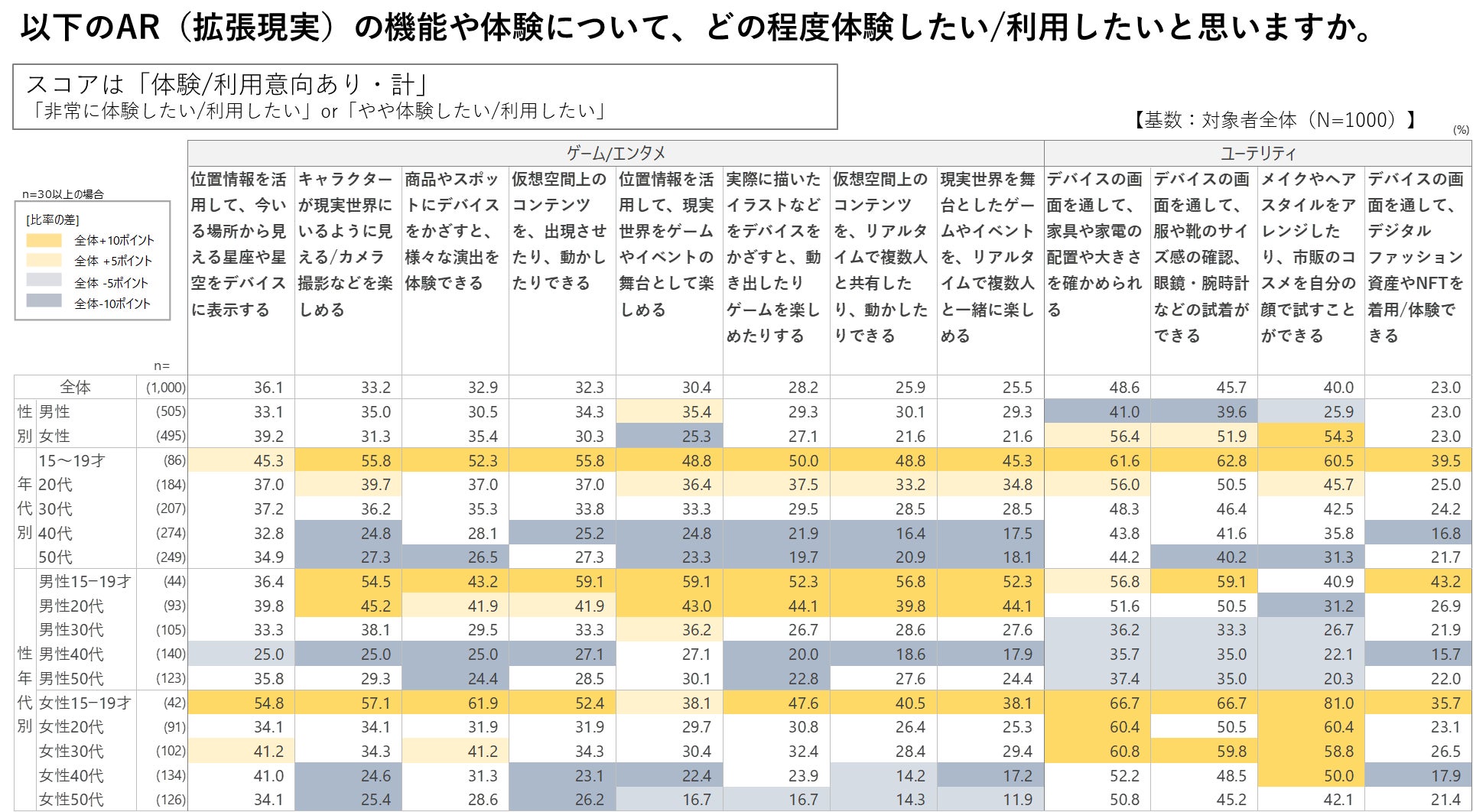 - 若年層ほど実生活へ有用なAR機能への関心が高く、今後の普及拡大に期待が高い。