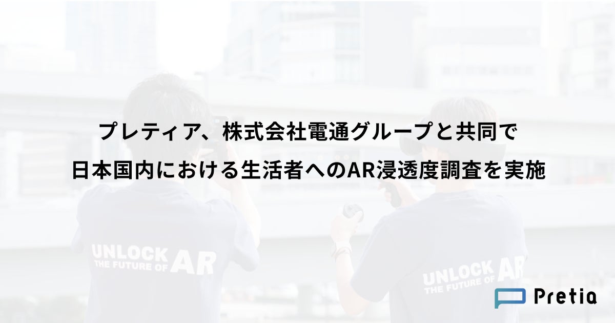 AR技術の研究開発及びARクラウドプラットフォーム「Pretia」、ARコミュニケーションサービスを提供するプレティア・テクノロジーズ株式会社(本社:東京都品川区、代表取締役:牛尾湧、以下「プレティア」)は、株式会社電通グループ(以下「電通グループ」)と共同で、全国15~59歳の計1,000名を対象に、「AR浸透度調査」(以下「本調査」)を実施しました。