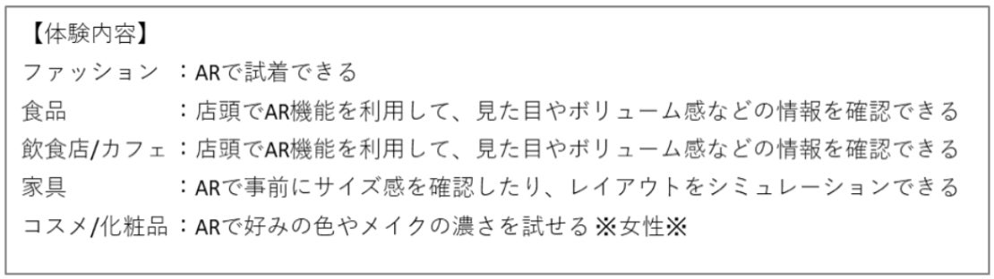 - 目的:ARの「利用実態」を把握し、ARならではの価値や魅力点を探る。