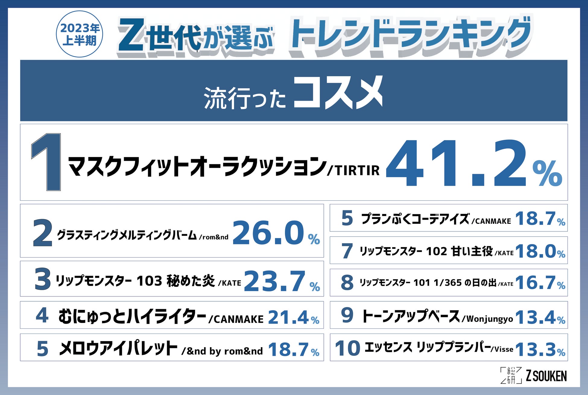 上半期では新型コロナウイルスが5類に引き下げられ、マスク着用が自由に。マスクを取れるようになり、マット系のリップからツヤを意識したリップなど様々なリップを楽しむZ世代が増加中。