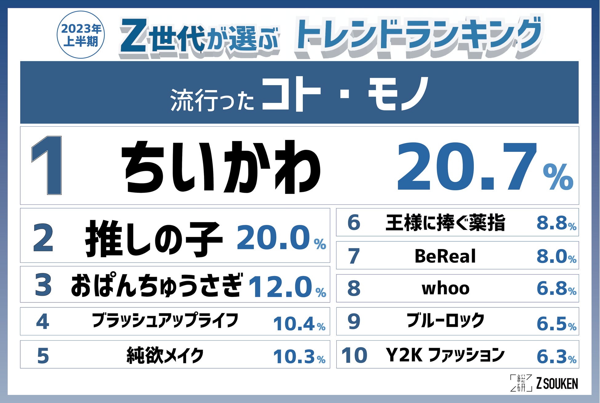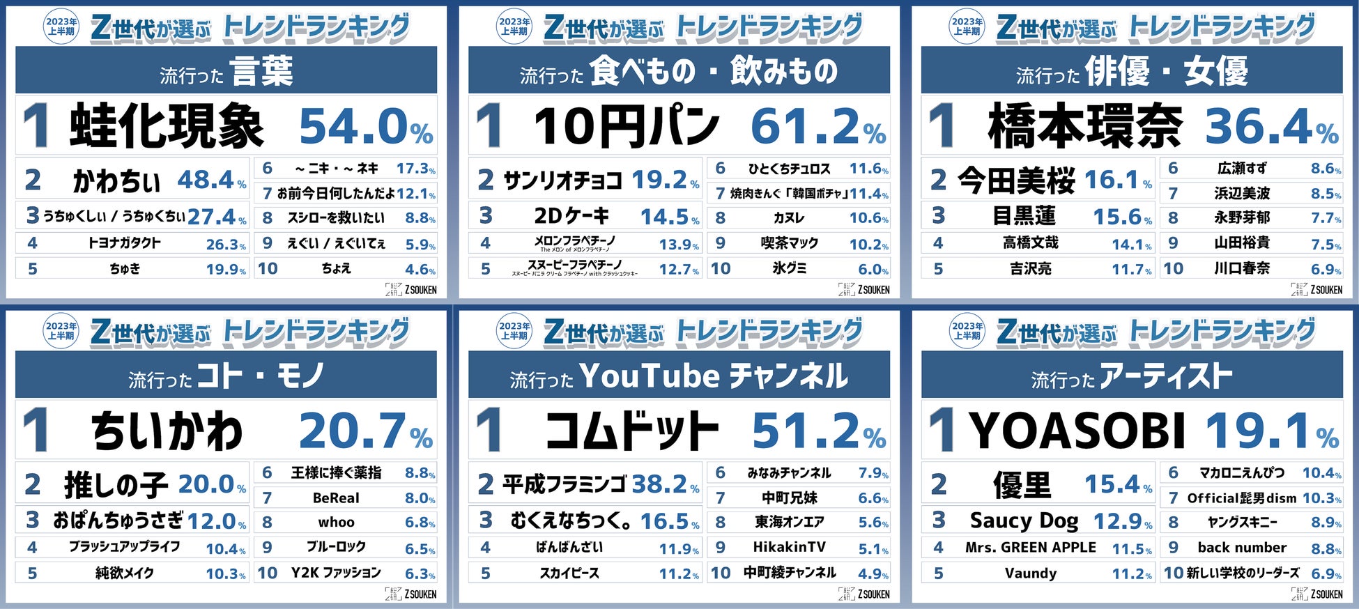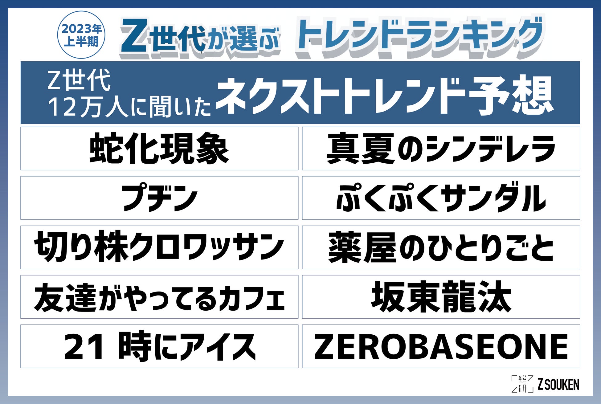Z総研は、株式会社N.D.Promotionが運営するNom de plume(ノンデプルーム)読者でありトレンドに敏感なZ世代女子を中心としたZ総研独自のリアルZ世代コミュニティ所属のメンバーへの2023年上半期トレンド調査を行い、『Z総研2023年上半期トレンドランキング』を発表しました。また、Nom de plumeのZ世代フォロワー12万人に聞いた編集部セレクトの「ネクストトレンド予想」も同時に発表いたしました。