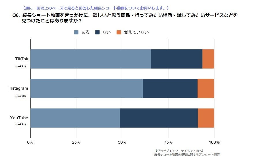本調査回答数:TikTok(991名)、Instagramリール(990名)、YouTubeショート(991名)