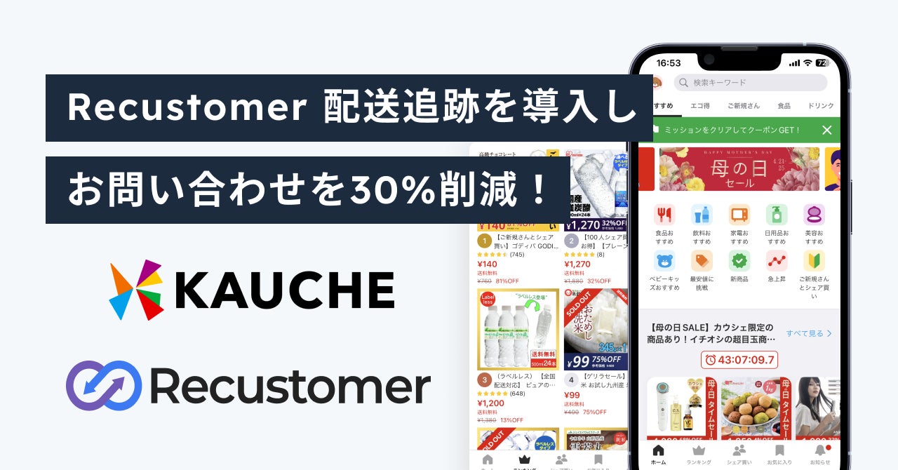 購入体験プラットフォーム「Recustomer(リカスタマー)」を運営するRecustomer株式会社(本社:東京都千代田区、代表取締役:柴田 康弘)は、2023年3月より株式会社カウシェ(本社:東京都渋谷区、代表取締役:門奈剣平)が展開するシェア買いアプリ「カウシェ」に導入されました。