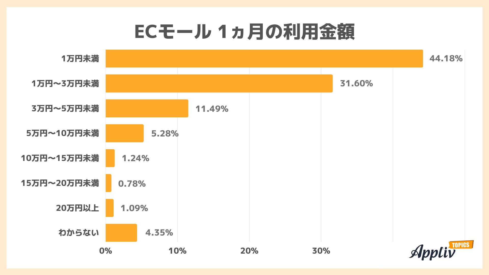 - ECモールの利用頻度は「月に数回」、1ヵ月の利用金額は「1万円未満」が最多