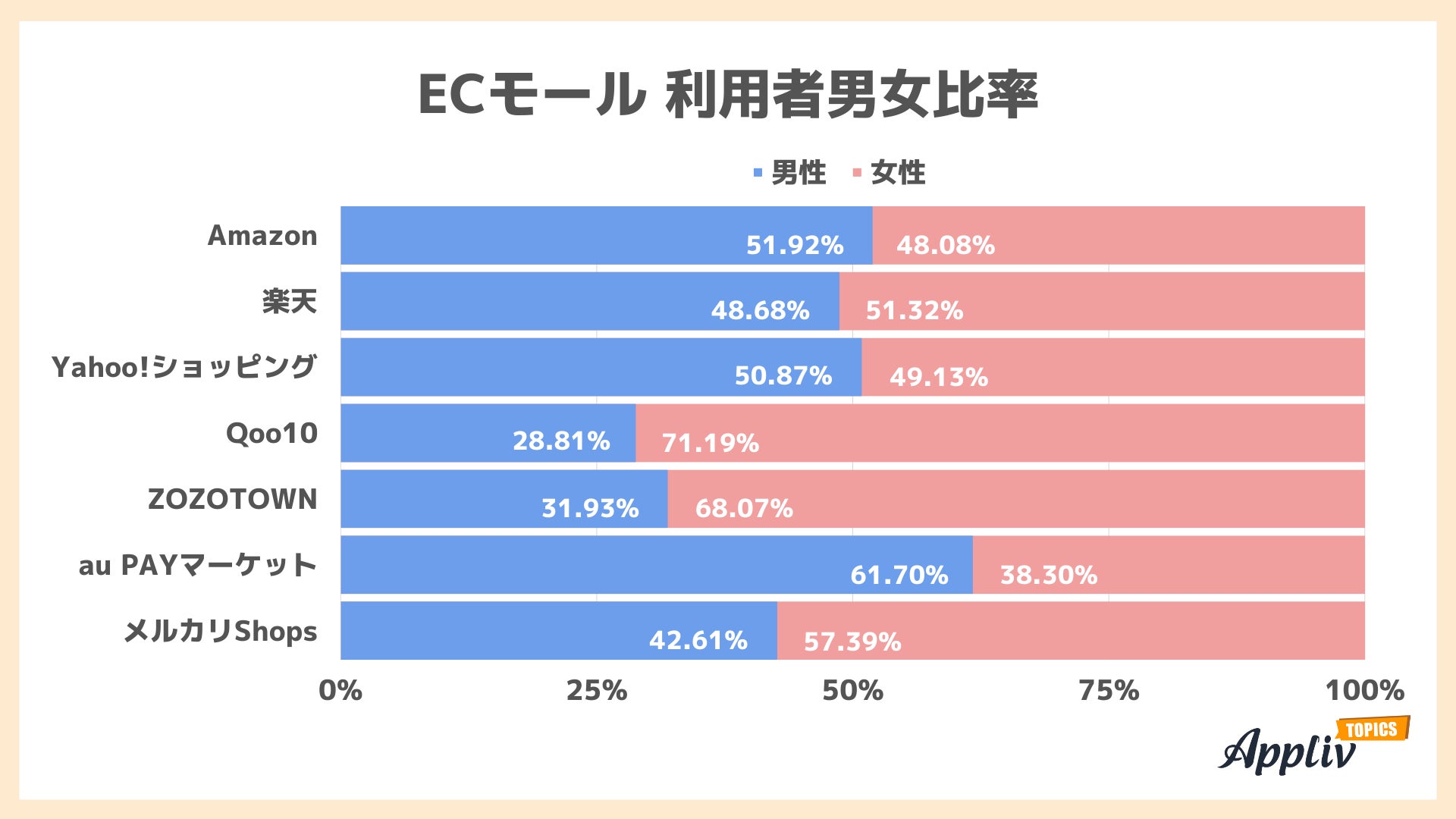 ■「Qoo10」「ZOZOTOWN」は女性の利用者が多い