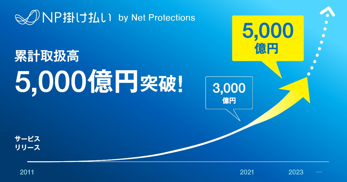 株式会社ネットプロテクションズ(所在地:東京都千代田区、代表取締役社長:柴田 紳、以下当社)は、当社が提供する企業間取引向けの後払い決済サービス「NP掛け払い」における累計取扱高(※1)が2023年5月時点で5,000億円を突破したことをお知らせいたします。