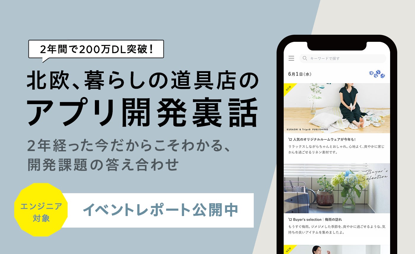 「北欧、暮らしの道具店」では、SNSからの誘導だけに依存しないリピートユーザーの獲得と、商品ページ・コラム・動画・ポッドキャストなど多様なコンテンツをシームレスに移動が可能な独自プラットフォームを構築するため、2019年11月にiOSアプリ、2020年4月にAndroidアプリを提供開始。およそ1年で100万ダウンロード、3年となる2023年6月に300万ダウンロードを突破しました。