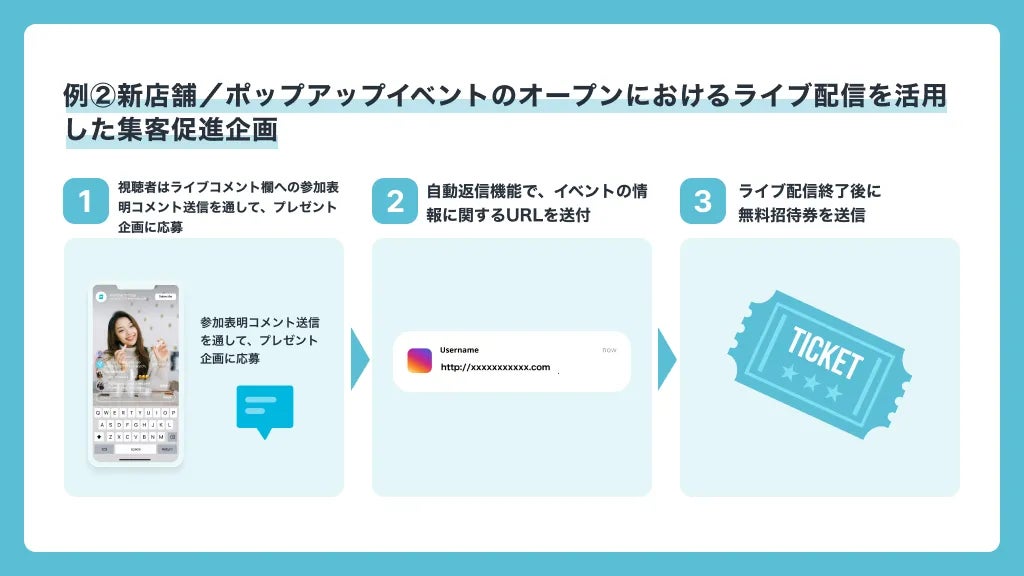 例②新店舗/ポップアップイベントのオープンにおけるライブ配信を活用した集客促進企画