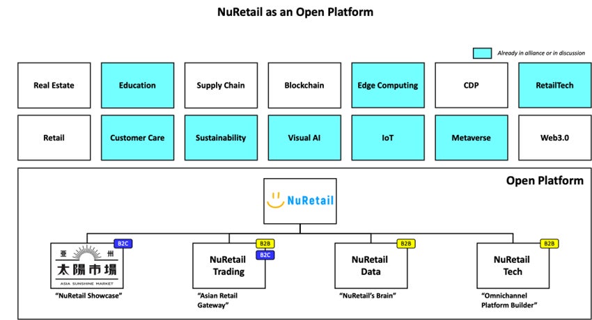NuRetailは、ファウンダーでCEOの飯田健作の「真のオムニチャネルの推進には、実店舗のDXが不可欠」との思いから設立されました。リテールテックスタートアップにはデータが不可欠ですが、NuRetailはスタートアップでありながら、『亜州太陽市場』というリテールのリアルビジネスも有しており、高いレベルのデータガバナンスを実現しています。また創業者の飯田のリテールビジネスへの深い知見を生かし、迅速な仮説の提供、実効性の高いアクションの見極めを行なっていきます。NuRetailはこのユニークなビジネスモデルにより、オムニチャネルプロダクトやSaaSの迅速な開発を行います。