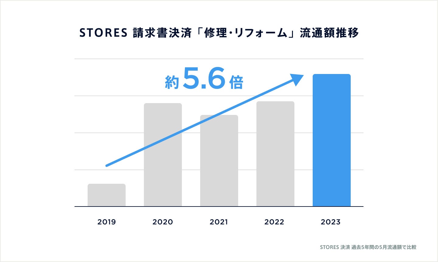 そして、コロナウイルスの危険度が5類へ引き下げられた現在でも、STORES 請求書決済 の利用が継続的に増加していることから、非接触決済が特定の業種において定着してきたことがわかります。