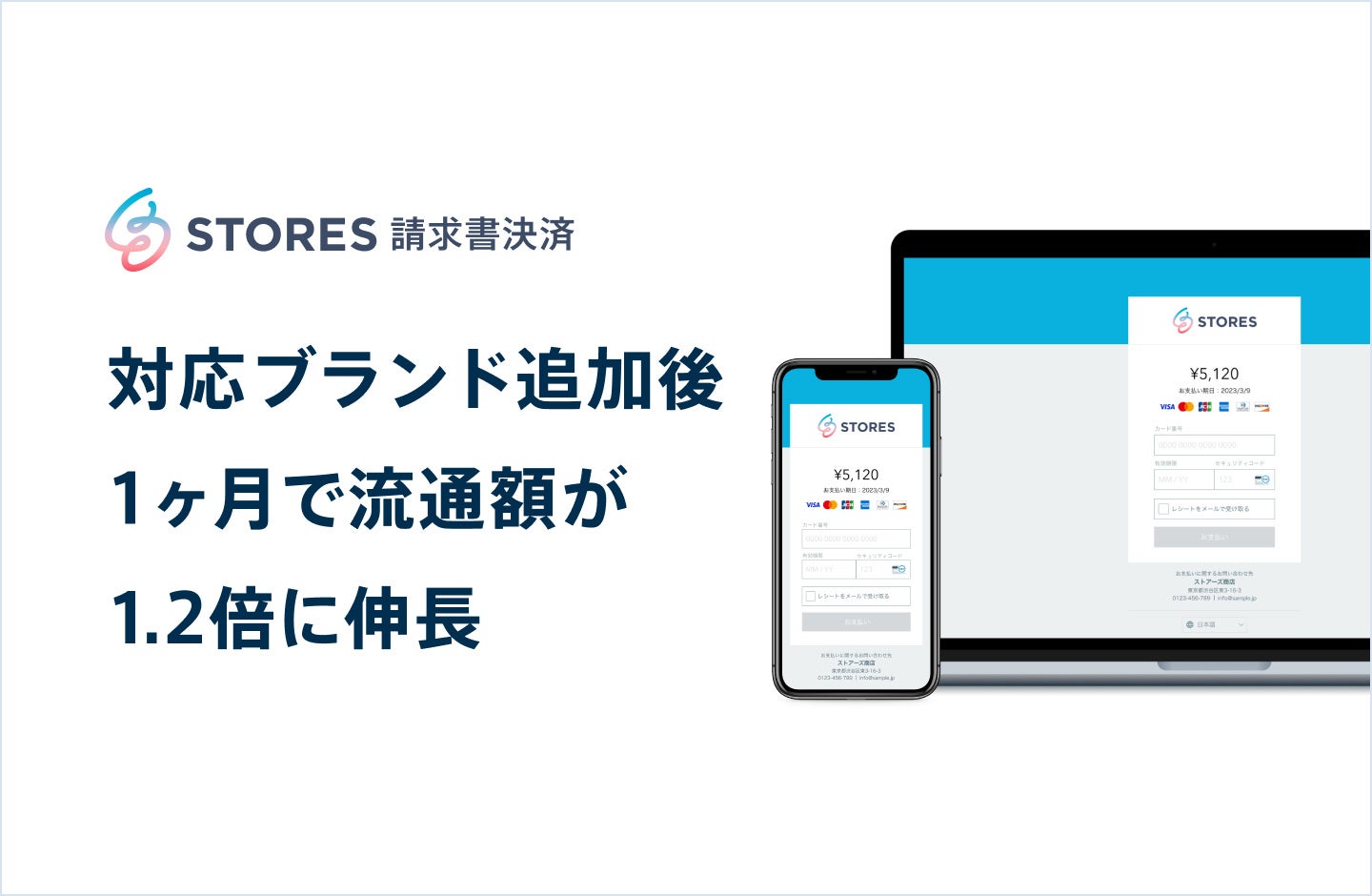 STORES 株式会社(以下、STORES)が運営するお店のキャッシュレス決済サービスSTORES 決済(ストアーズ決済)は、「STORES 請求書決済」において、クレジットカードのブランド追加(※1)後、1ヶ月で流通額が約1.2倍に伸長(※2)しました。この成長は、店舗の運営スタイルの多様化とそれに伴う非接触での決済ニーズの増加、そしてカードブランド追加による利用機会の拡大が主な要因となっていることがわかりました。