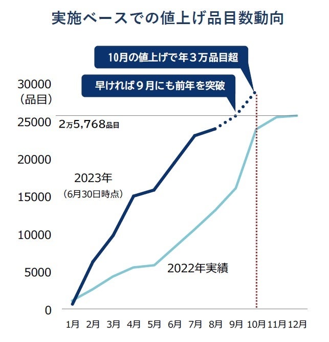 - 7月中に年3万品目へ到達 値下げや価格据え置きも年内1000品目に迫る