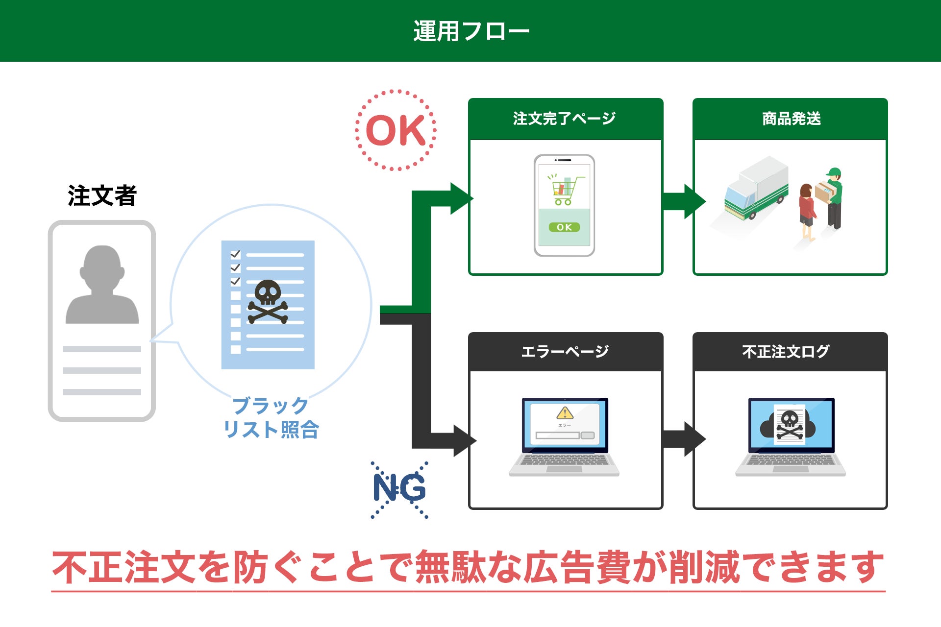 不正と思われる注文を自動で判定し、不正注文者へ商品の発送を未然に防ぐことができる機能です。