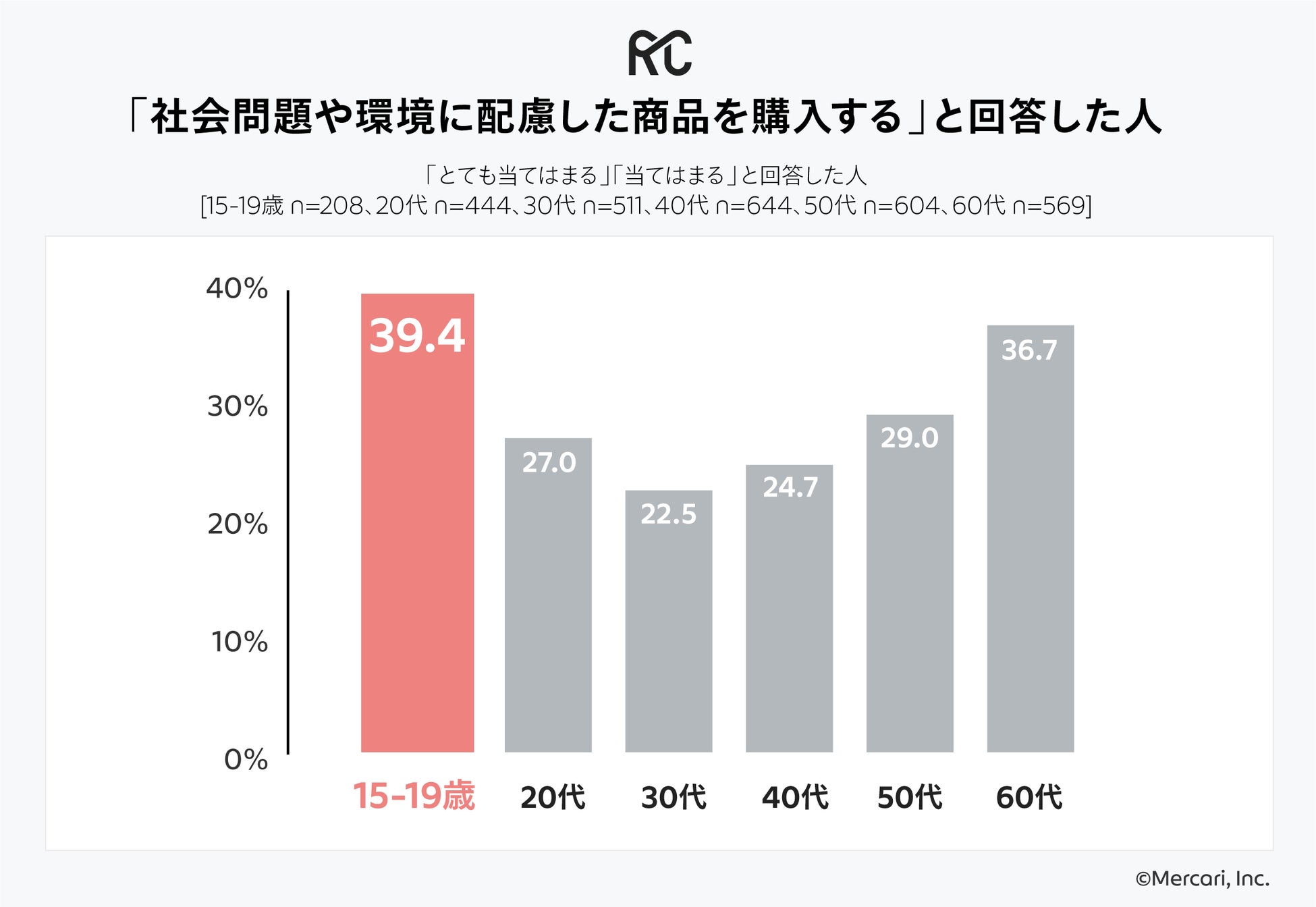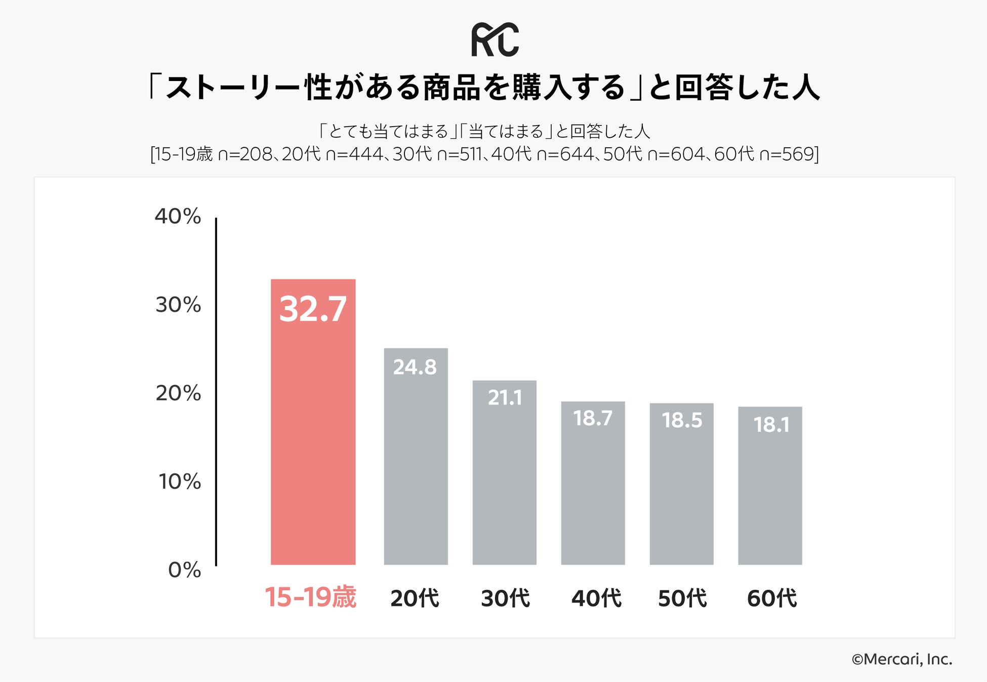 - 10代は「ストーリー性がある商品を購入する」(32.7%)、「社会課題や環境に配慮した商品を購入する」(39.4%)と回答した人が他世代より多く、ブランドの思いや企業姿勢などが消費行動に影響していることが伺える結果に。