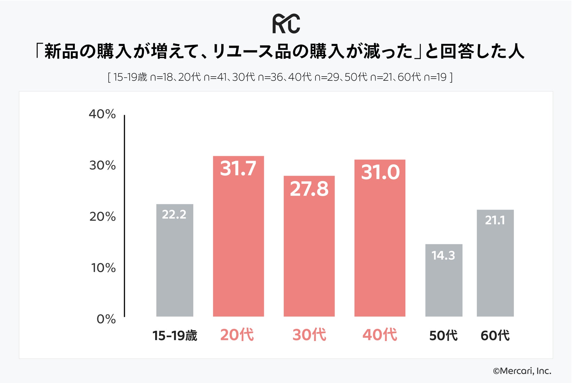 - 中でも、この先10年後に消費の中心を担う20〜40代の約3人に1人は「新品の購入が増えて、中古品の購入が減った」と回答。リユース品を通じたブランド体験が、そのブランドの新品購入の促進につながっていることが示唆されました。
