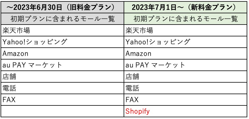 2023年7月1日から料金プランを改定し、「GoQSystem」の初期プランに含まれるモールに「Shopify」を追加いたします。これにより、今まで有料オプションでご利用いただいておりました「Shopify」との連携は無料でご利用いただけます。