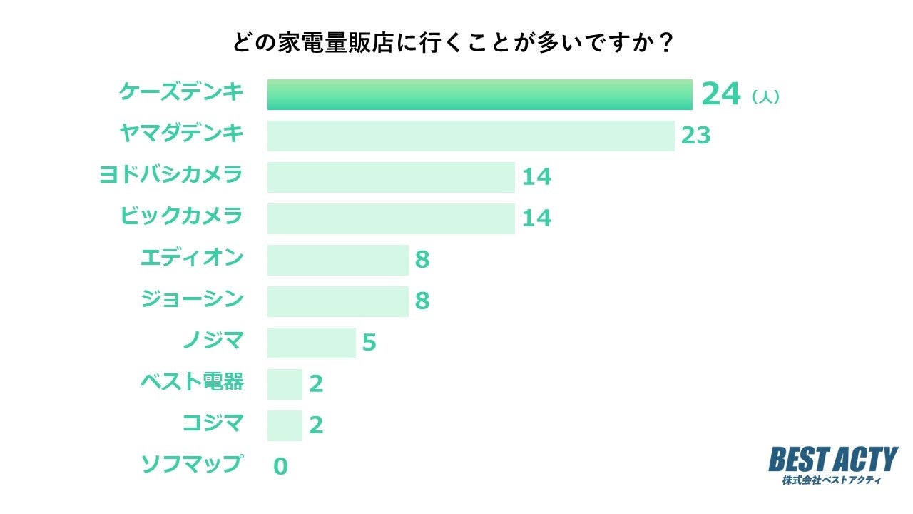 アンケートの結果、「ケーズデンキ」と答える人が最も多い結果となりました。