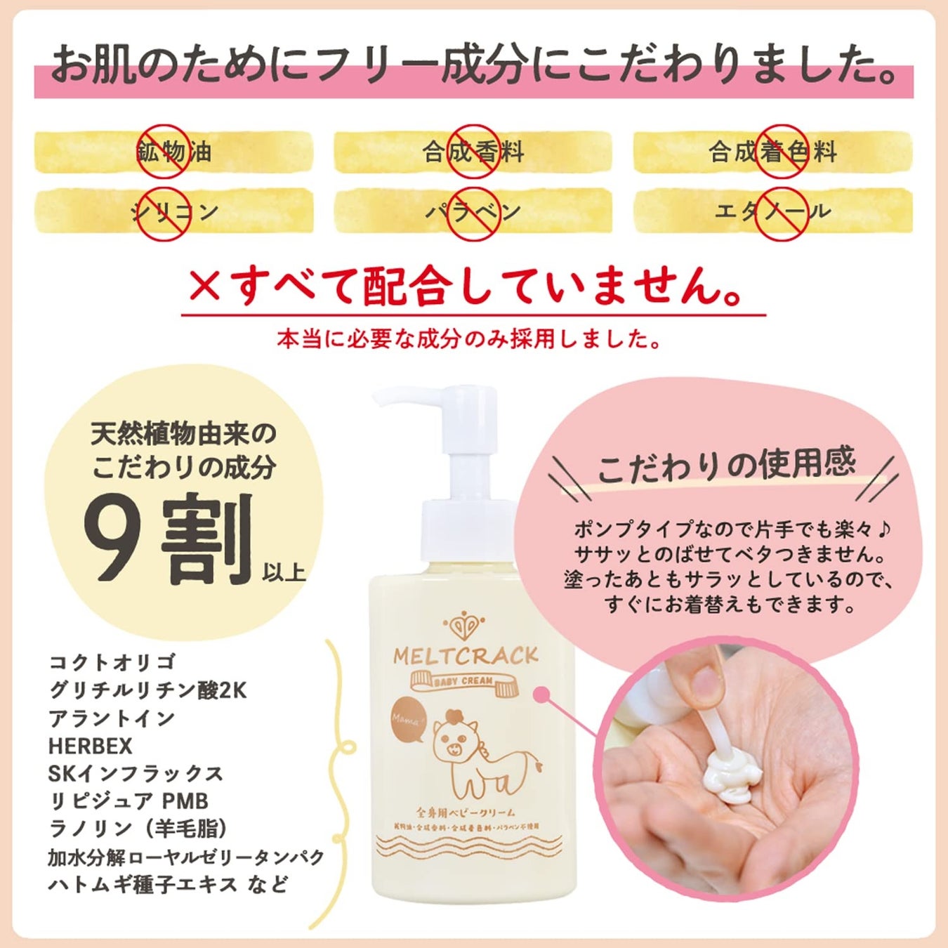 天然植物由来の原料が9割以上を占める肌にやさしいベビークリーム「メルトクラック」などを出品していただいております。