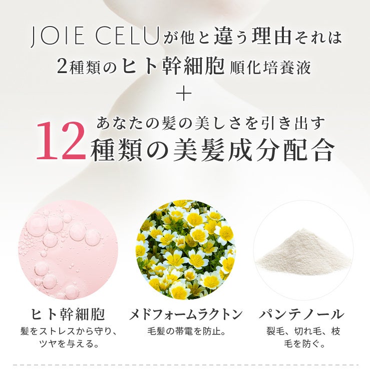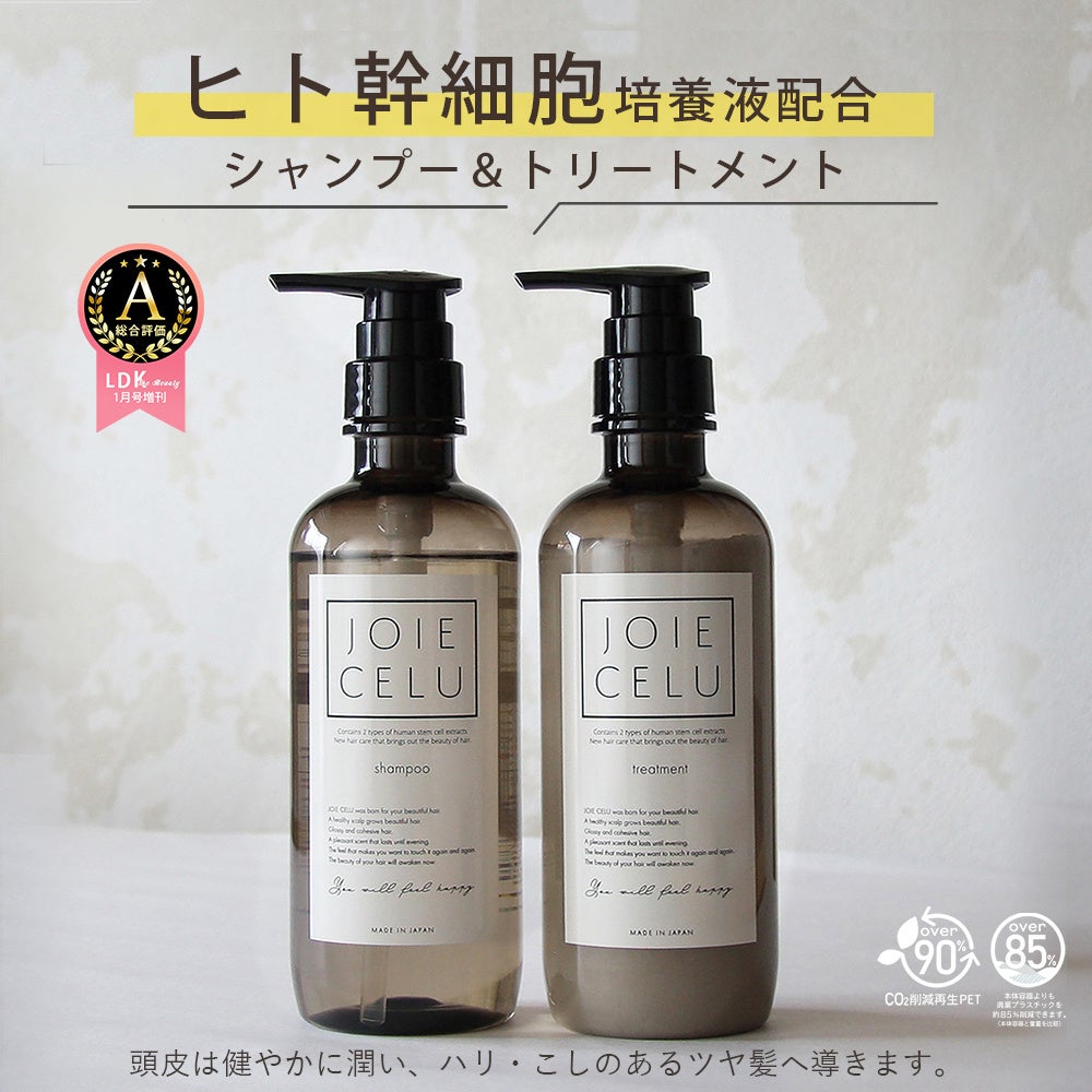 髪本来の美しさを引き出すために2種類のヒト幹細胞培養液を配合した「ジョワセルボトルセット(シャンプー&トリートメント)」などを出品いただいております。