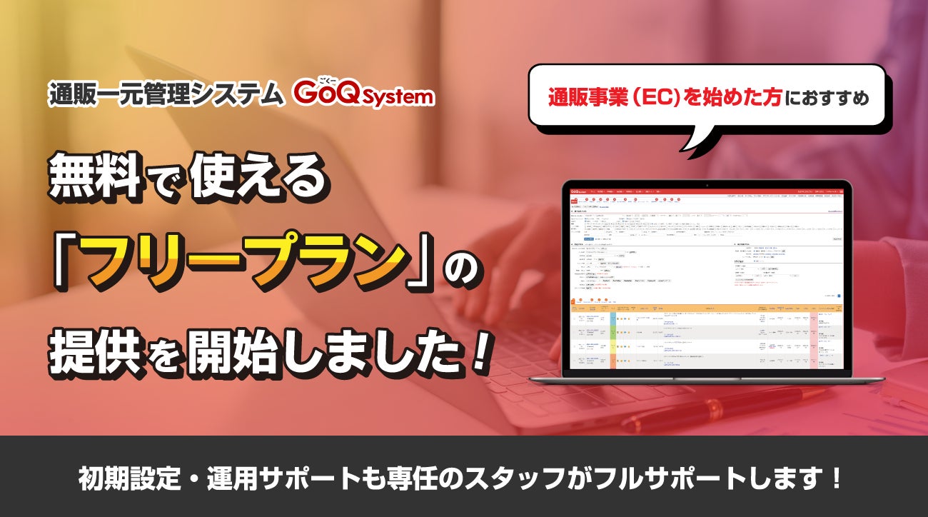 株式会社GoQSystem(本社:東京都中央区、代表:藤本 卓治)が提供するクラウド型通販一元管理システム「GoQSystem」は2023年7月1日から、無料で使える「フリープラン」の提供を開始いたしました。