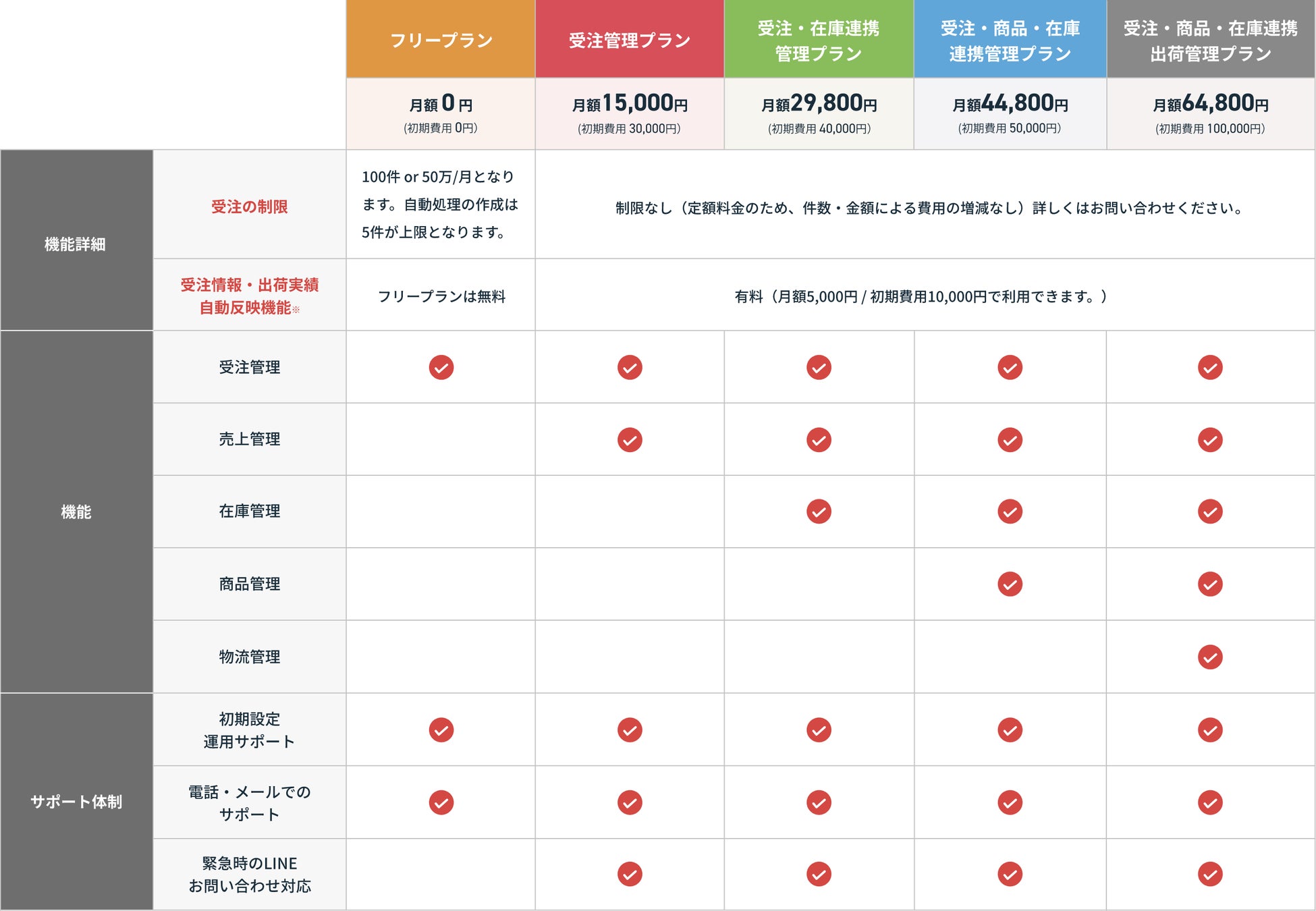 「フリープラン」では「GoQSystem」の受注管理機能を無料で利用することができ、初期設定・運用サポートも無料で受けることができます。