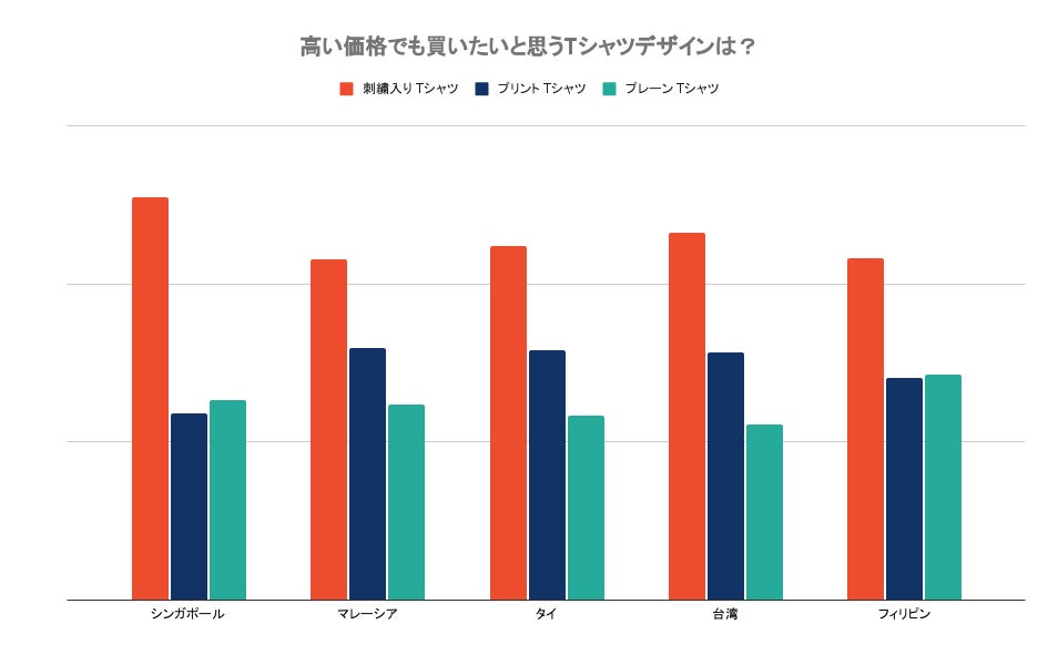 全市場の消費者は、Tシャツの場合、刺繍が入ったデザインの方が高額で購入する傾向があります。