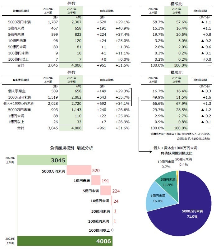帝国データバンクは、2023年上半期(1-6月)の企業倒産件数(負債1000万円以上の法的整理が対象)について集計し、分析を行った。