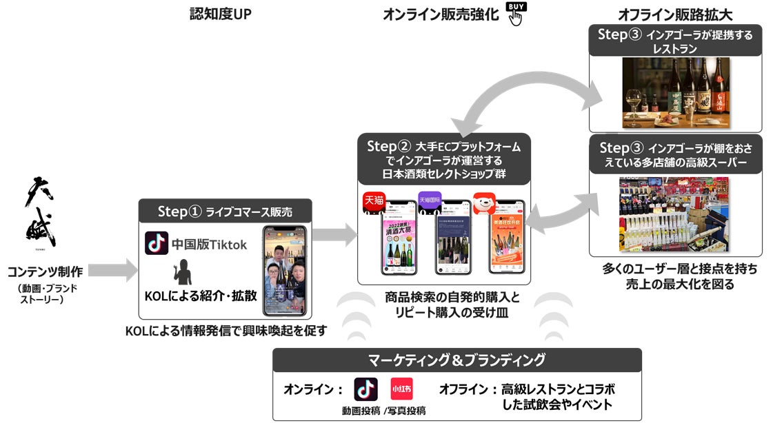 インアゴーラはこれまで、丁寧な情報制作と中国独自の様々なSNS情報フォーマットに適したブランディングとオンラインマーケティング、試飲会やイベント等のオフラインマーケティングを通した認知拡大を図りながら、中国大手ECプラットフォームでのオンライン販売や飲食店・高級スーパーでのオフライン販売といった多様な販売手法を駆使することで、複合的に日本の酒蔵の中国展開をサポートしてまいりました。